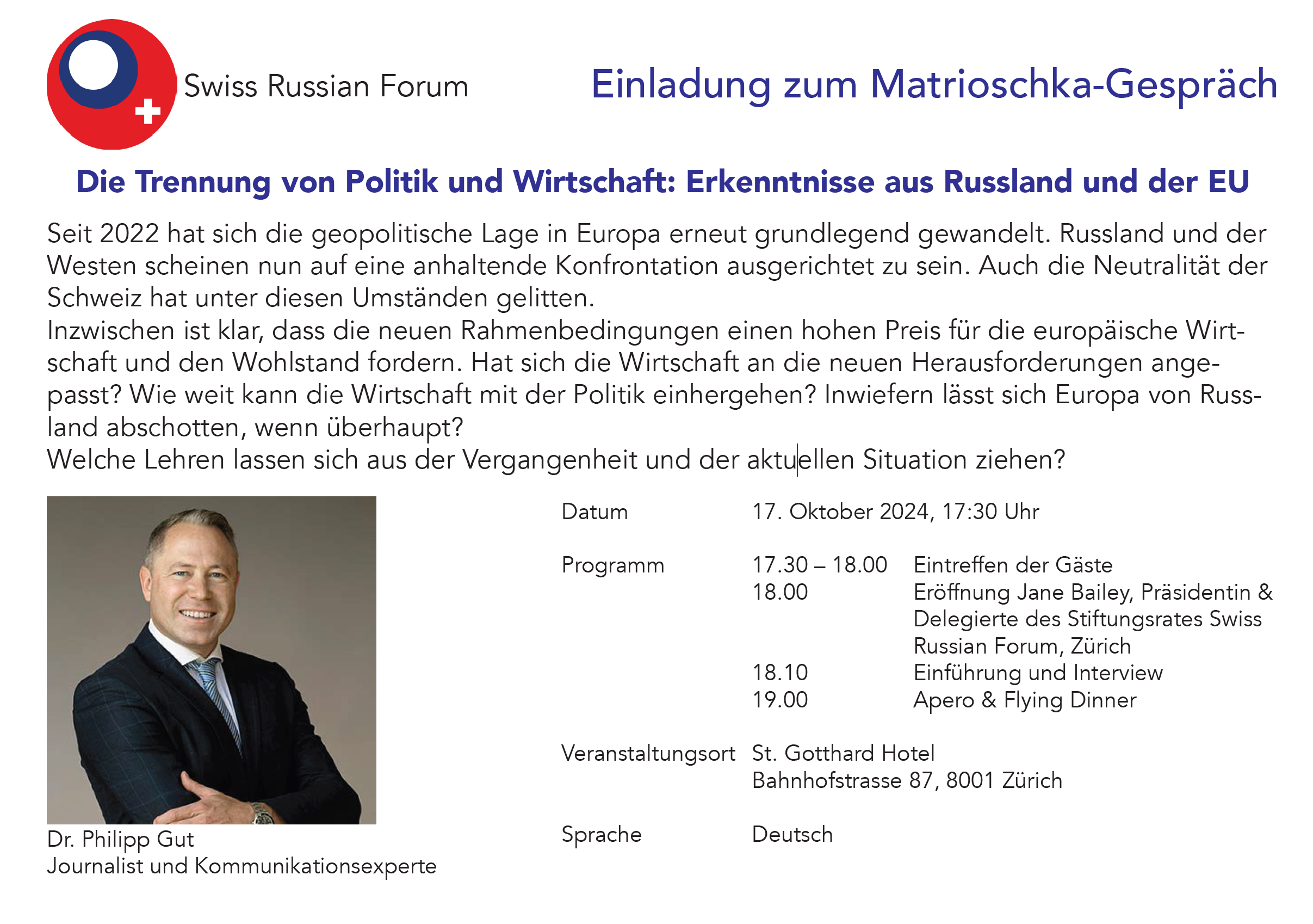 Matrioschka- Gespräch Mit Dr. Philipp Gut: Die Trennung von Politik und Wirtschaft: Erkenntnisse aus Russland und der EU